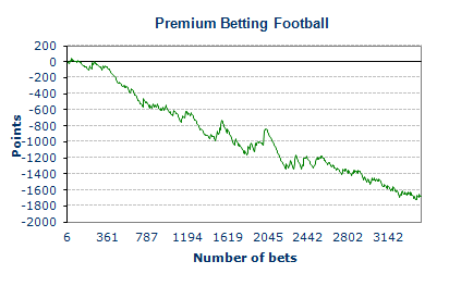 Premium Betting is a subscription service offering quality and carefully considered advice on betting on Football (English and Scottish) and Golf (European and PGA Tours). Proofed respectively from November 2003 and January 2004. Bet selection and staking is highly specific, with 5 weekly football selection making up 5 four-folds and one accumulator, and 6 weekly golf selections making up 6 singles and 9 high-priced doubles.